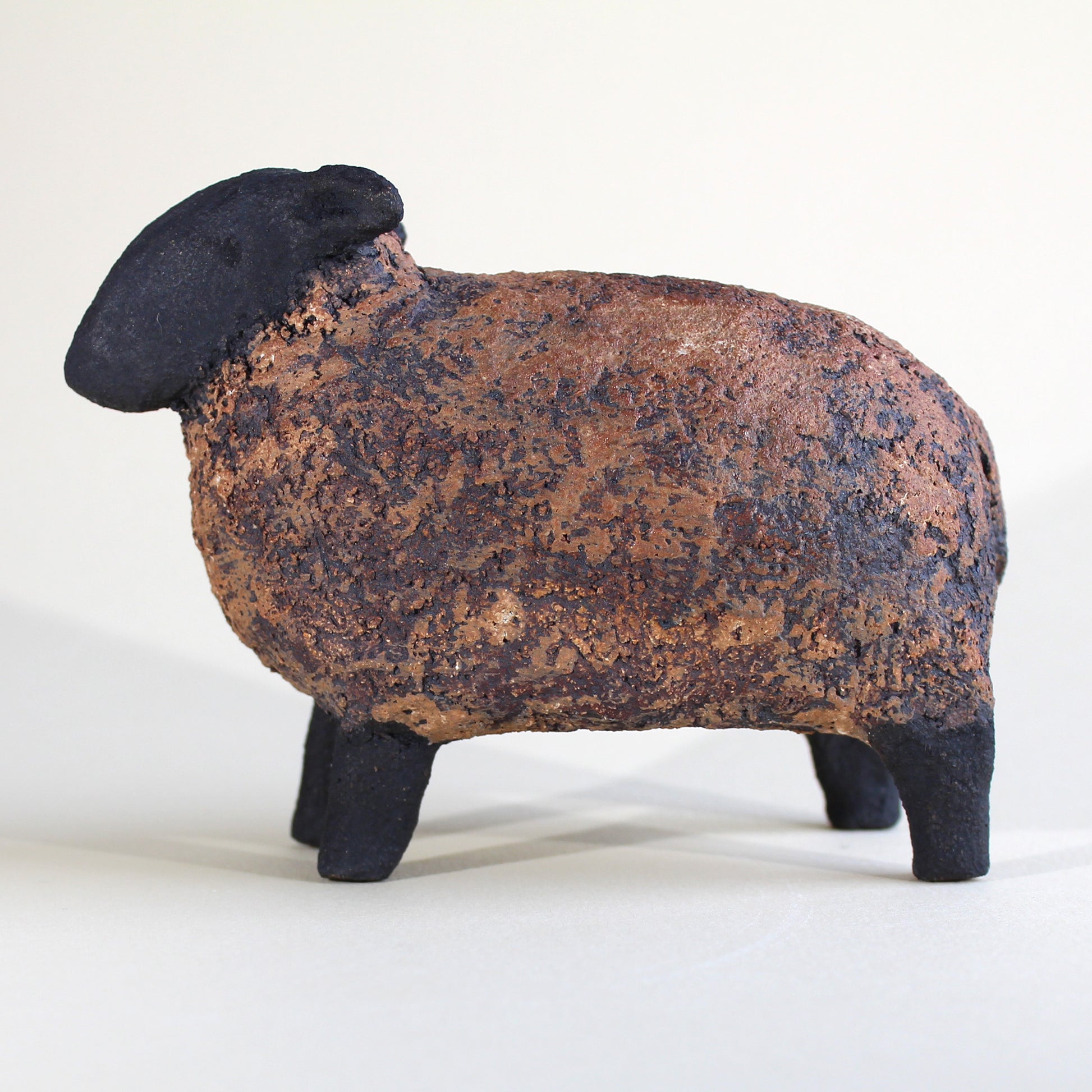 Small ceramic animal sculpture by artist Rowan Knight. Grogged stoneware with underglaze and oxide finish. A minimalist, hand-sized form with lots of surface texture.